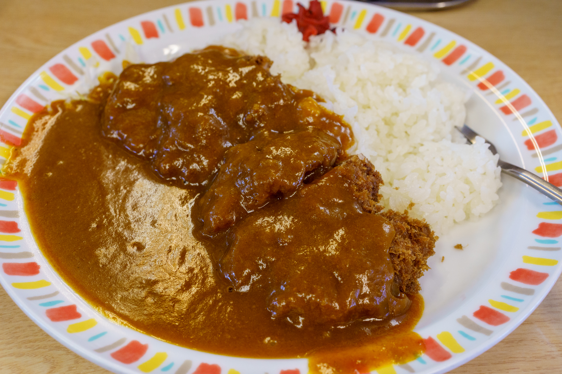 ご主人のカツを揚げる鮮やかな手さばきに見とれていると、見た目にスタンダードなカツカレーが到着しました。美しさに目を奪われます。