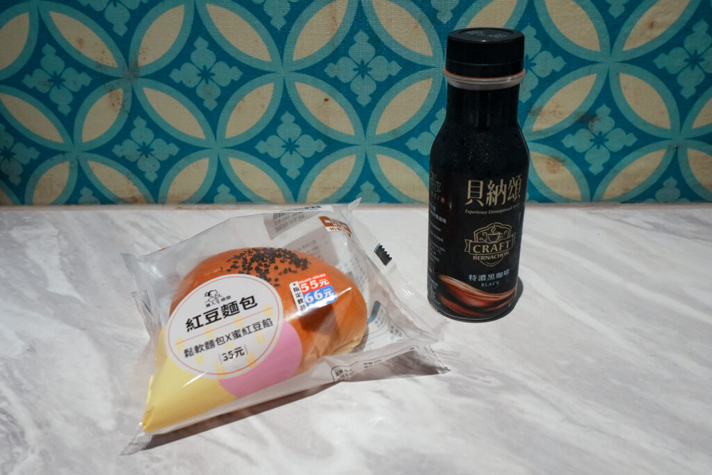 窓がないということで、朝起きてたら、やはり外に出て日の光も浴びたい。ということで最終日以外の毎朝、ホテルから1分で到着するハイ・ライフ(Hi-Life、コンビニ)に通っていました。ここであんぱんとコーヒーを買うのが習慣になりました。