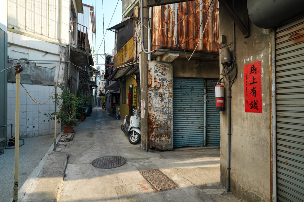 日本統治時代に整備され急発展した台中は、街路が碁盤の目のように敷かれています。そのため迷いにくく、また歴史的建造物がさりげなく残っているなど、ついつい街歩きがはかどる都市でした。ふと路地に入ると、歴史を感じさせる街並みを味わえることもあります。廟は少なかったものの、老街的な雰囲気に台南と近い感覚を覚えました。