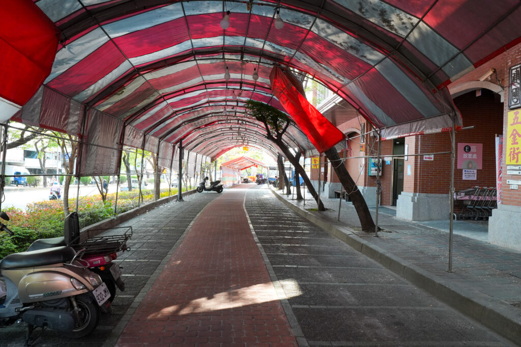 しかし、歩道の歩きにくさは台南と同レベルですね。段差が多く、店の前にはバイクがずらりと並びます。歩道に面した店のテーブルや設備も堂々と置かれ、通路ではなくショップの一部という考えなのでしょう。車道を歩いた方がスムーズに移動できますが、今度は肘に当たりそうな近さでバイクがそばを走り抜けます。大きなスーツケースのときは歩きたくないレベルです。