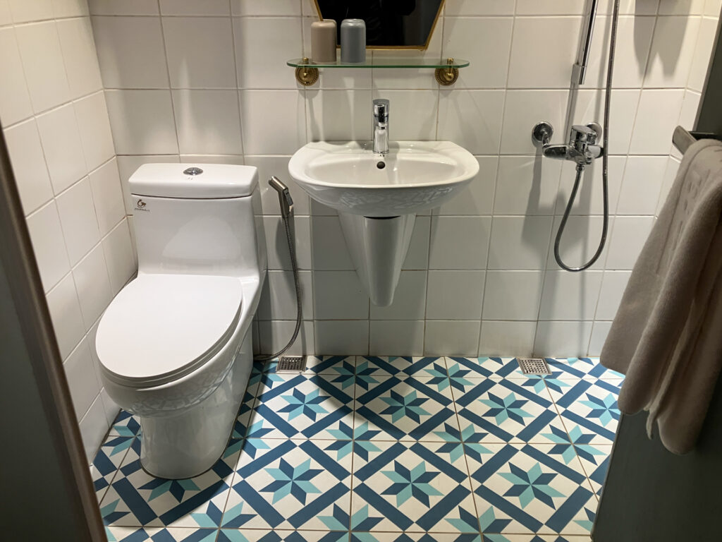 あと、トイレは紙を流せないタイプでした。ハンドシャワーがついているのでそれでお尻を洗い、水滴をふきとった紙を備え付けのゴミ箱に入れます。このホテルのハンドシャワーとは相性が良かったのか、今回でかなり上手に使えるようになったと思います。
