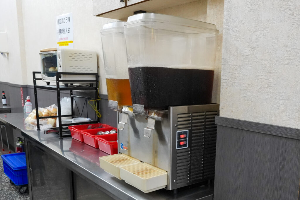 メニューも見ずに店頭で元気よく「Beef Steak!」と注文。しどろもどろにソースを選んだところ、「Where are you from?」と店員からいぶかしげに返ってきたので「Japan!」とスムーズなやりとり(のつもり)。その後、「スープと飲み物は自由です」と日本語への翻訳を表示したスマホ画面をみせてくれました。そうでしたか、台湾語はもちろん英語もダメそうに思われたっぽい(その通り)。