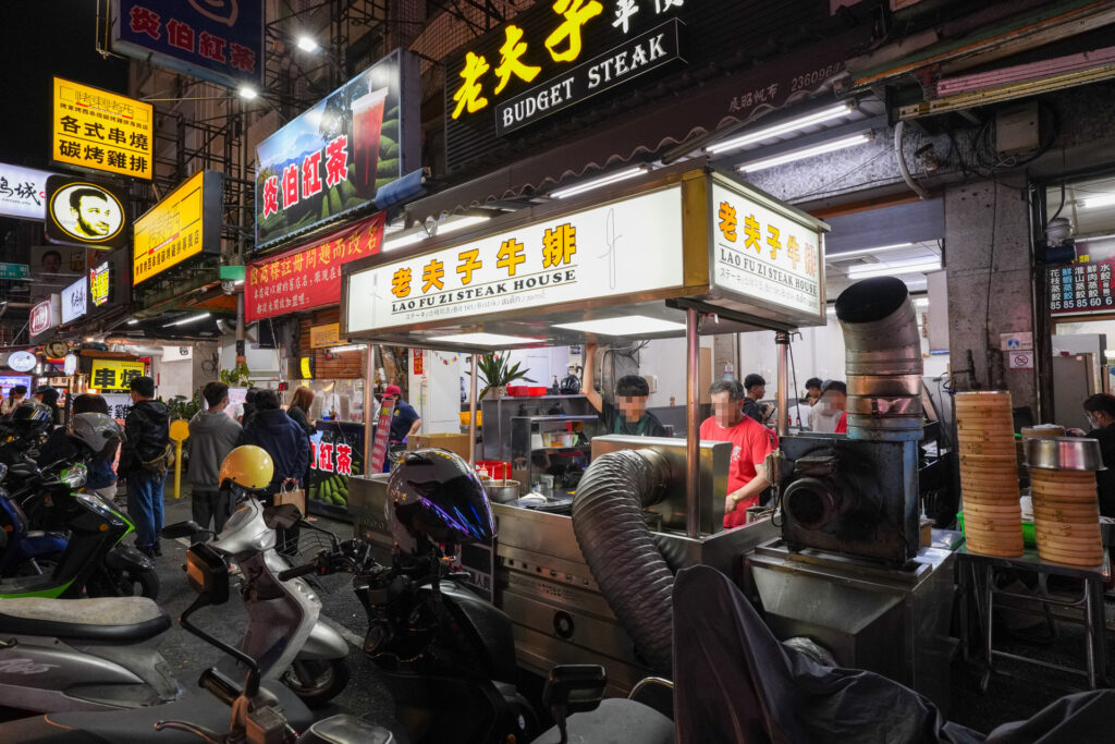 そんな台式牛排が忠孝夜市にもありました。店名は「老夫子牛排」。他の店と同じように、屋台の奥にしっかりしたイートインスペースがあります。これは入ってみるしか。