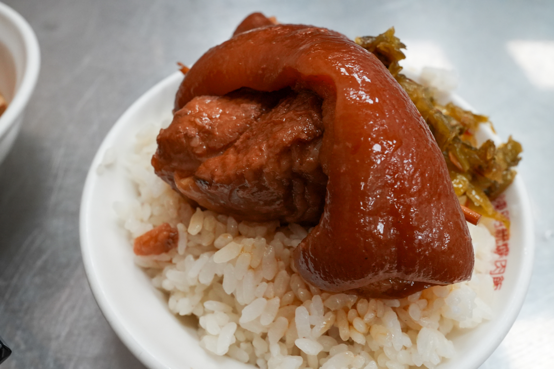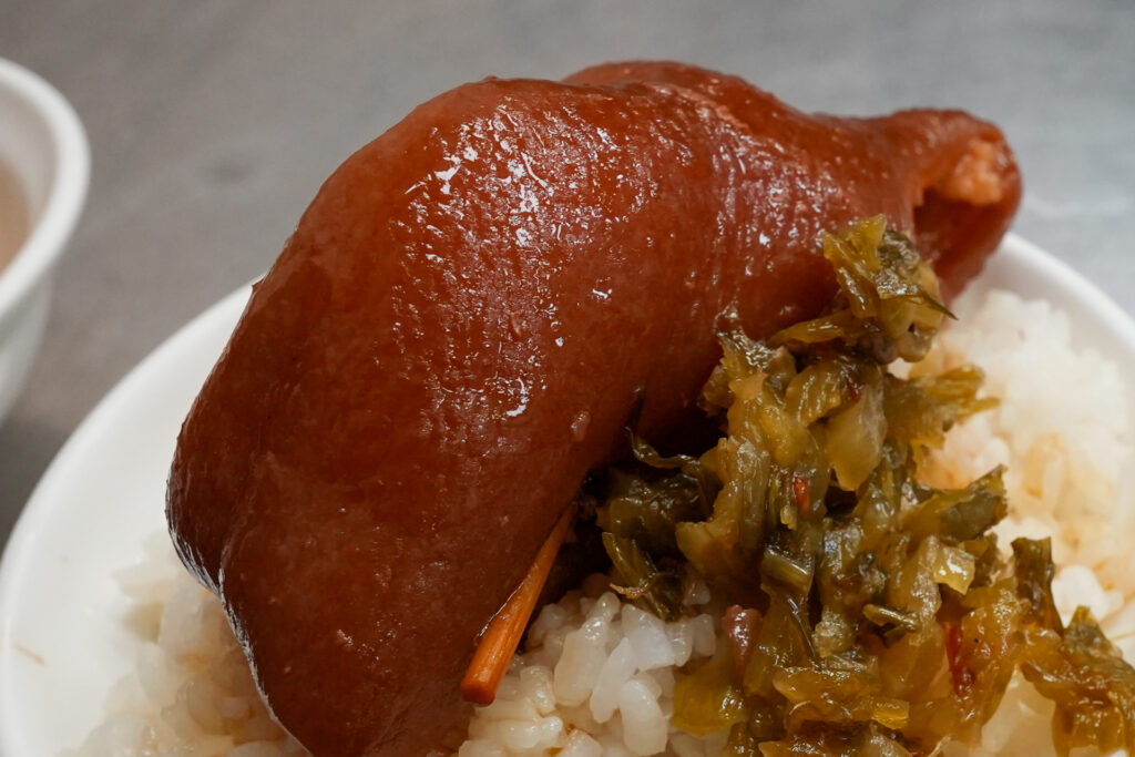 1名用の小さな机に座っていると、ぽんと目の前に置かれました。これが「陳明統爌肉飯」の「爌肉飯(脚庫)」です。